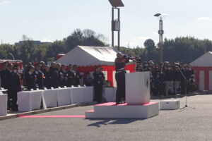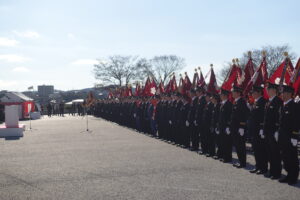消防職員、消防団員等、一堂に整列です。