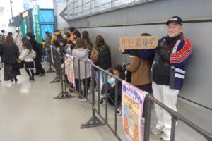 大人気で長い行列ができてしまいましたので、最後尾にスタッフを配置しました。