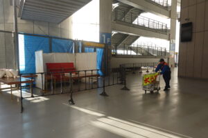 その頃、フェスタ会場のコンコース内では出展の準備に大忙しです。