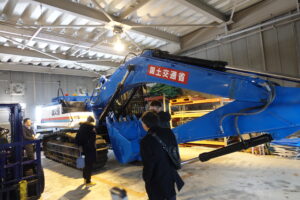 職員から施設の概要や照明車等の現車の説明を受けるほか、令和6年の能登半島地震、