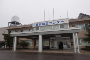 道中、高速等には雪がありましたが、無事、視察先の「富山防災センター」へ到着。