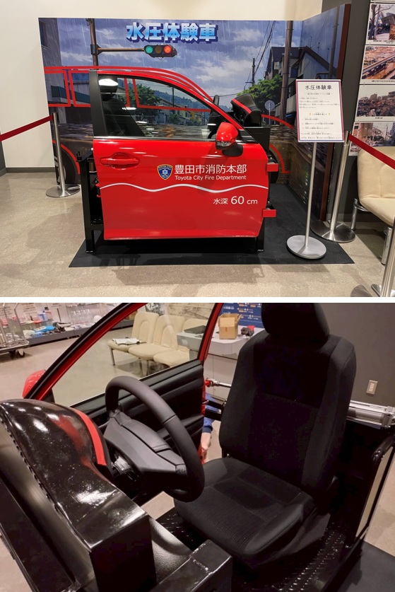 豊田市 防災学習センター に、新たに 「水圧体験ドア」 が設置されました。 この装置は、大雨などで道路が冠水した際に、車のドアが開かなくなる状況を再現し、 車内からの脱出がどれほど難しいかを体験できる設備 です。